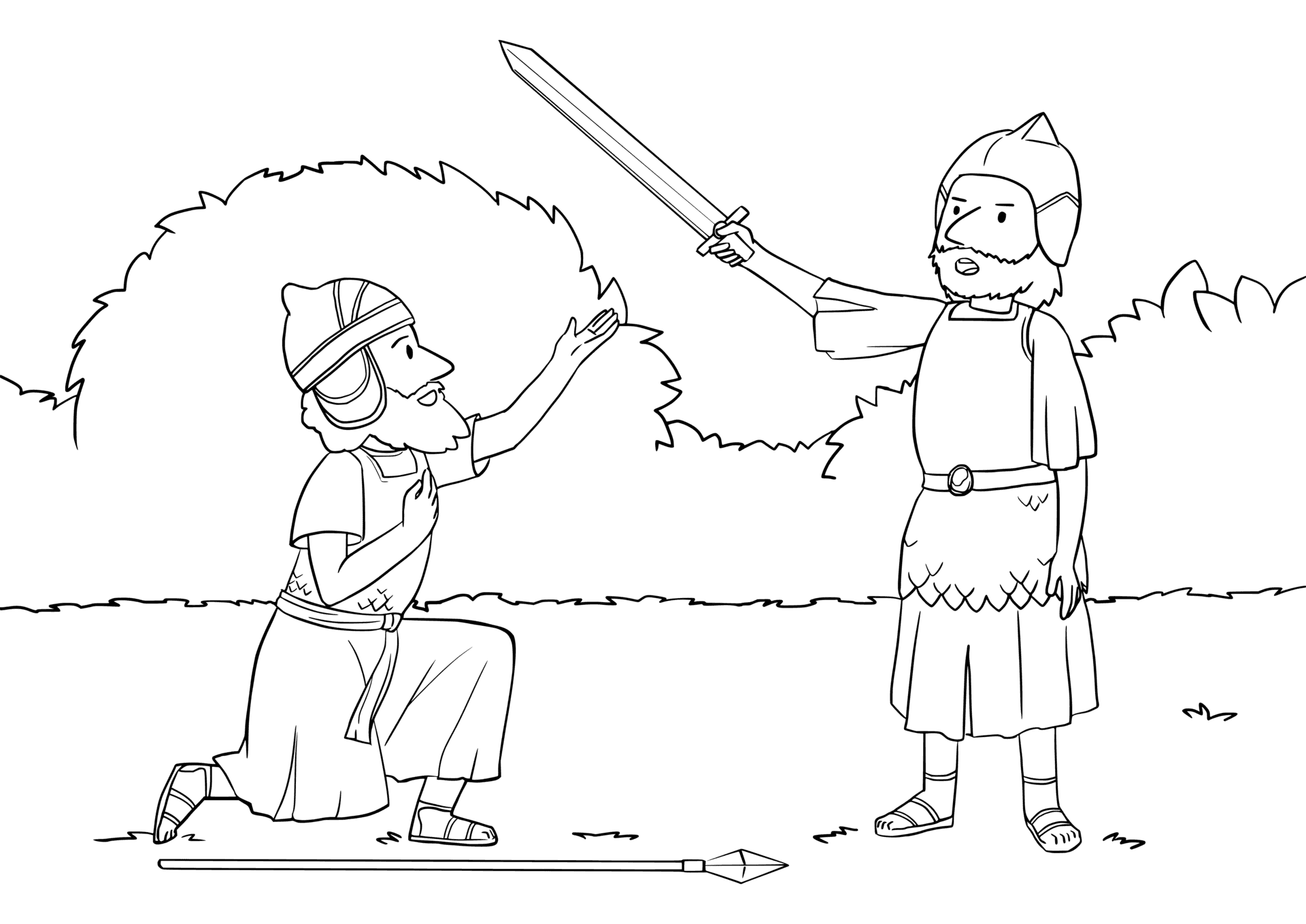 8 David also arose afterward, and went out of the cave, and cried after Saul, saying, My lord the king. And when Saul looked behind him, David bowed with his face to the earth, and did obeisance. 9 And David said to Saul, Wherefore hearkenest thou to men’s words, saying, Behold, David seeketh thy hurt? 10 Behold, this day thine eyes have seen how that Jehovah had delivered thee to-day into my hand in the cave: and some bade me kill thee; but mine eye spared thee; and I said, I will not put forth my hand against my lord; for he is Jehovah’s anointed. 11 Moreover, my father, see, yea, see the skirt of thy robe in my hand; for in that I cut off the skirt of thy robe, and killed thee not, know thou and see that there is neither evil nor transgression in my hand, and I have not sinned against thee, though thou huntest after my life to take it. 12 Jehovah judge between me and thee, and Jehovah avenge me of thee; but my hand shall not be upon thee.